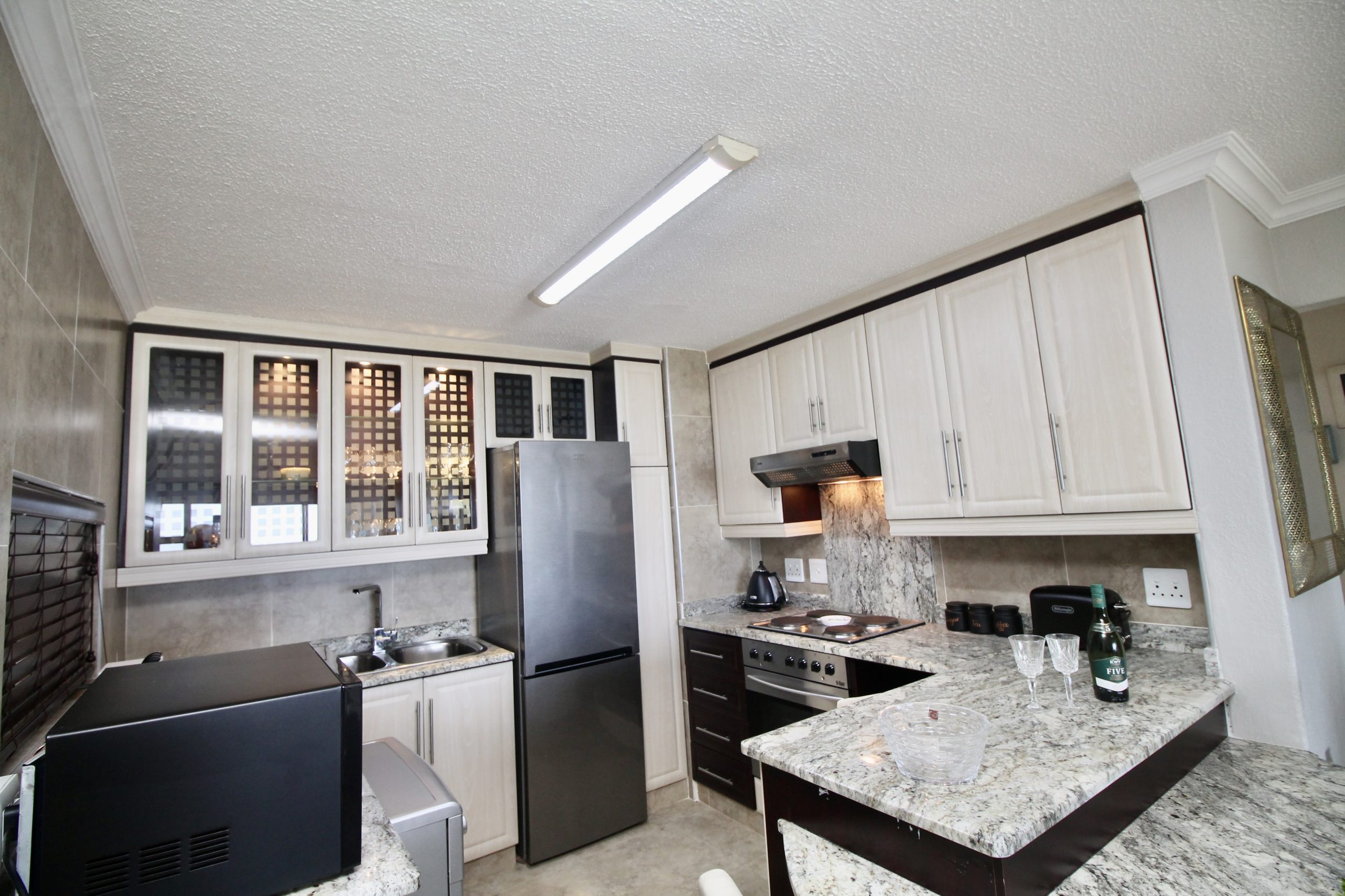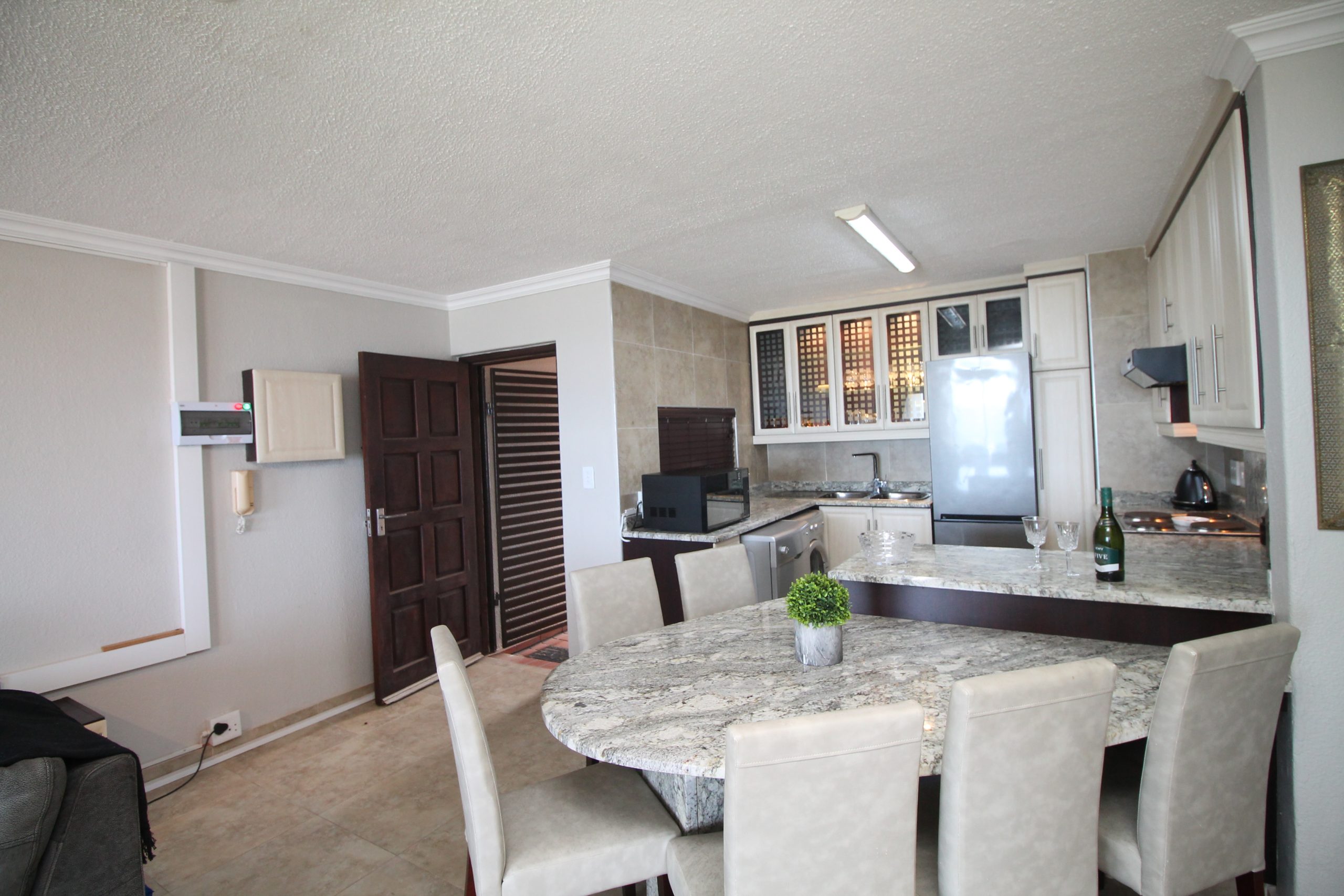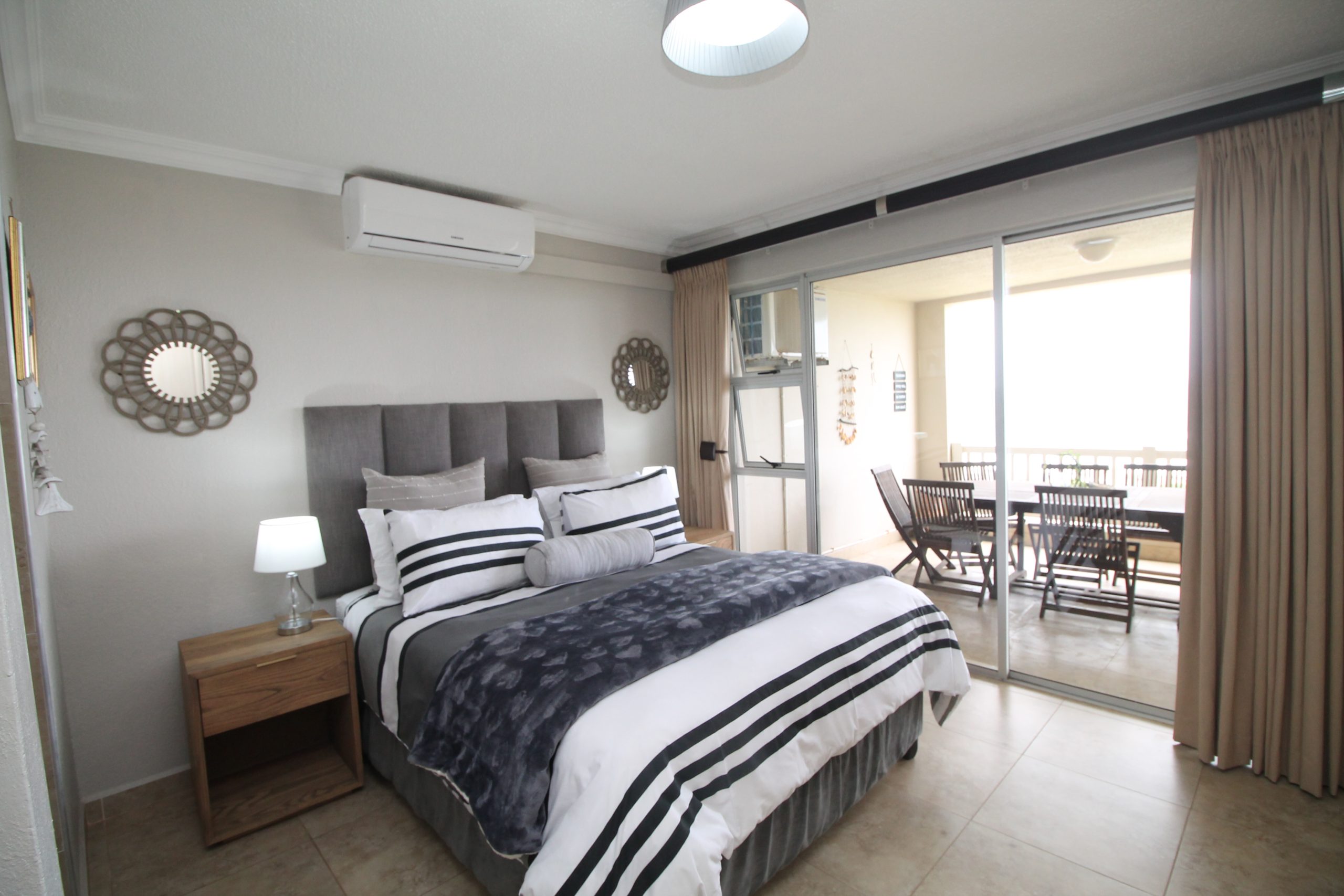 It also offers a premium experience with the sound of waves and a beautiful pool creating a tropical paradise for guests. The open-plan living area that flows onto a spacious balcony creates a harmonious connection between indoor and outdoor living spaces. Stay cool and comfortable all year round with air-conditioning in the living room as well as the main bedroom. There is a smart TV where there is an open view decoder, guests are welcomed to bring along their own DSTV decoder if you would like to connect to DSTV. Well equipped kitchen suitable for self-catering has a functional layout to help create an enjoyable cooking experience.
