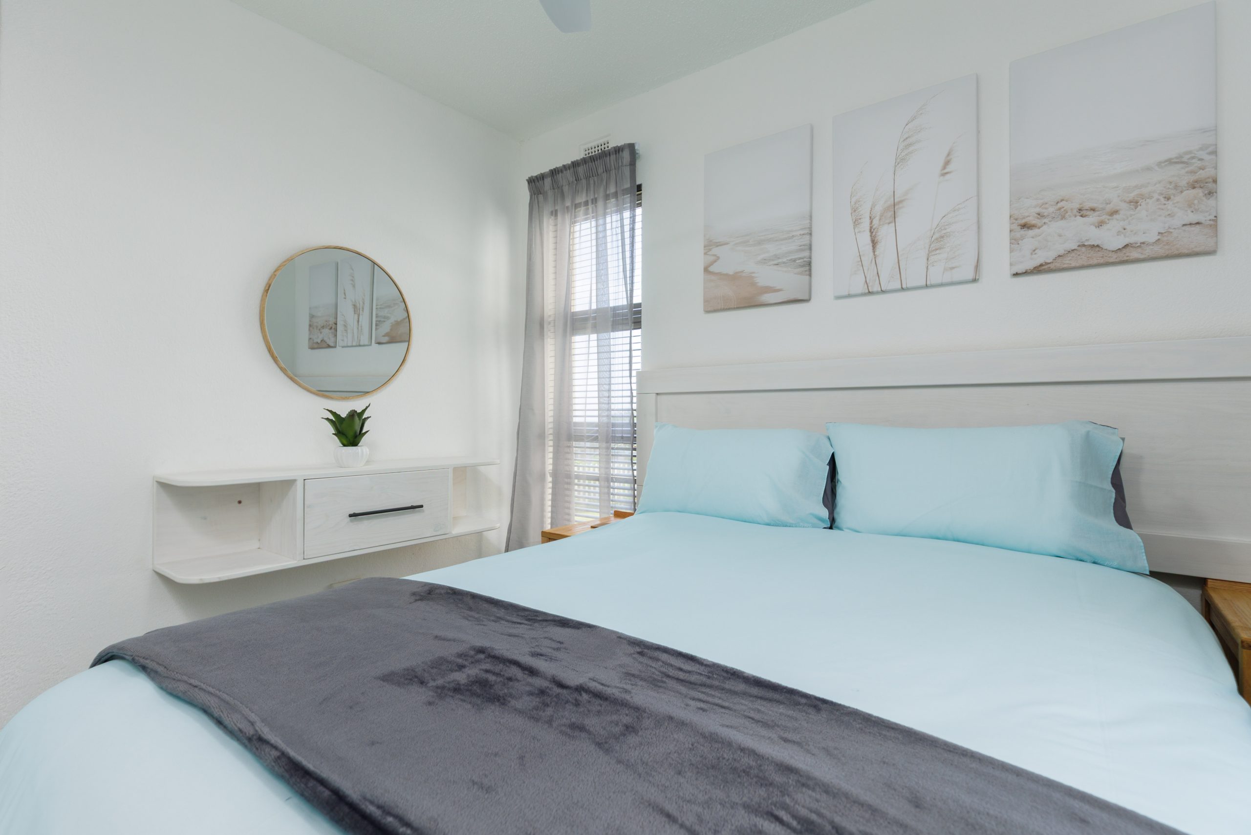 A fully equipped, modern kitchen with modern appliances allowing for full meal preparation. There is a dishwasher in the kitchen. Both of the bedrooms feature a double bed with cotton linen making each of the them a restful retreat. There are sleeper couches in the living room accommodating for a small child. Comfort is key for a home-away home experience. The en-suite bathroom as well as the guest bathroom both have showers.