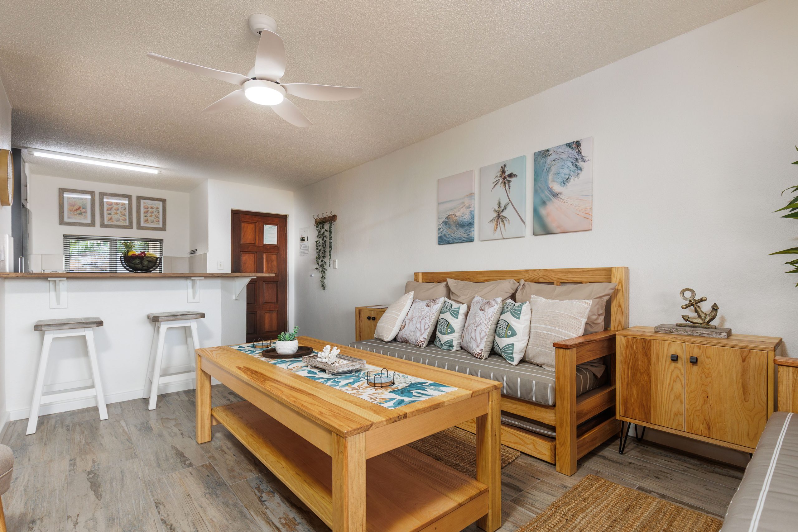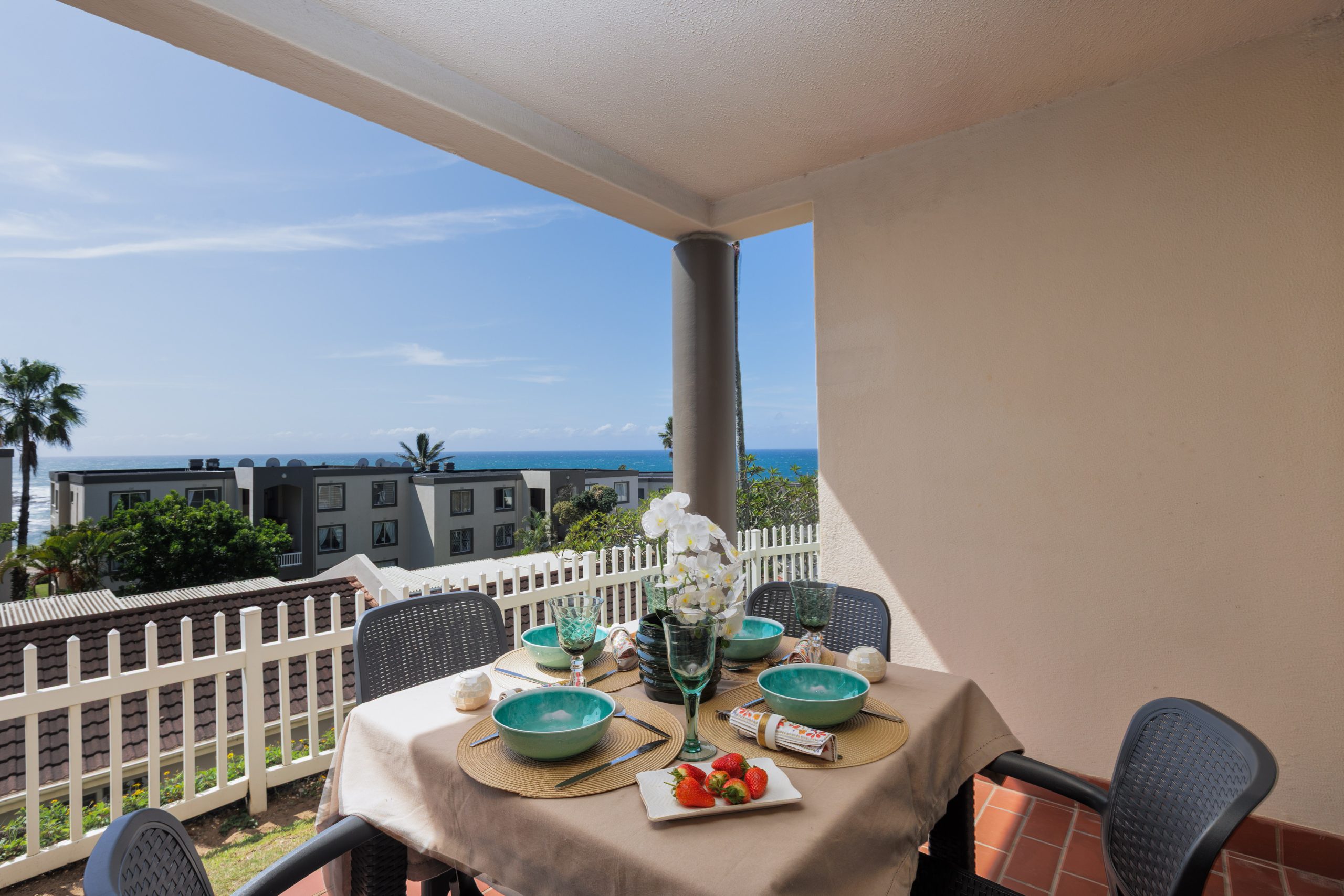 The open plan living area flows seamlessly onto a small patio which offers the perfect place to relax and enjoy the coastal vibe. Let this be your base where you can enjoy all that the South Coast has to offer. Take a cooling dip in the ocean before relaxing on the beach or take a swim in the sparkling complex pool before lightening up the braai on the patio