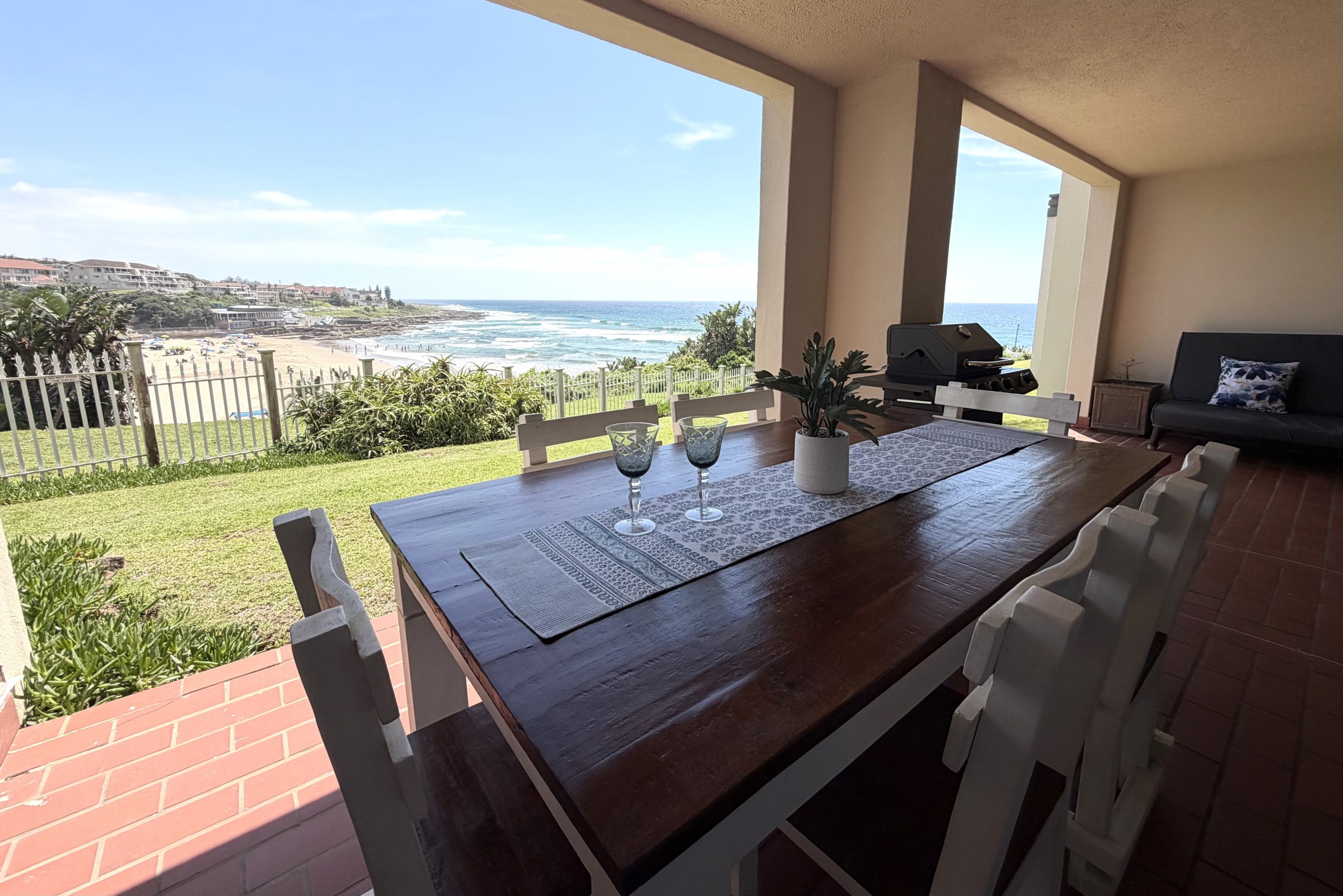 Laguna La Crete 43 - Immerse yourself into this stylishly decorated three bedroom apartment that is situated in Uvongo, South Coast. This well appointed ground floor apartment has everything needed for a wonderful self-catering holiday. The sea-views and lagoon views are magnificent and the spacious patio is the perfect place to relax and feel rejuvenated. Your ultimate coastal sanctuary.