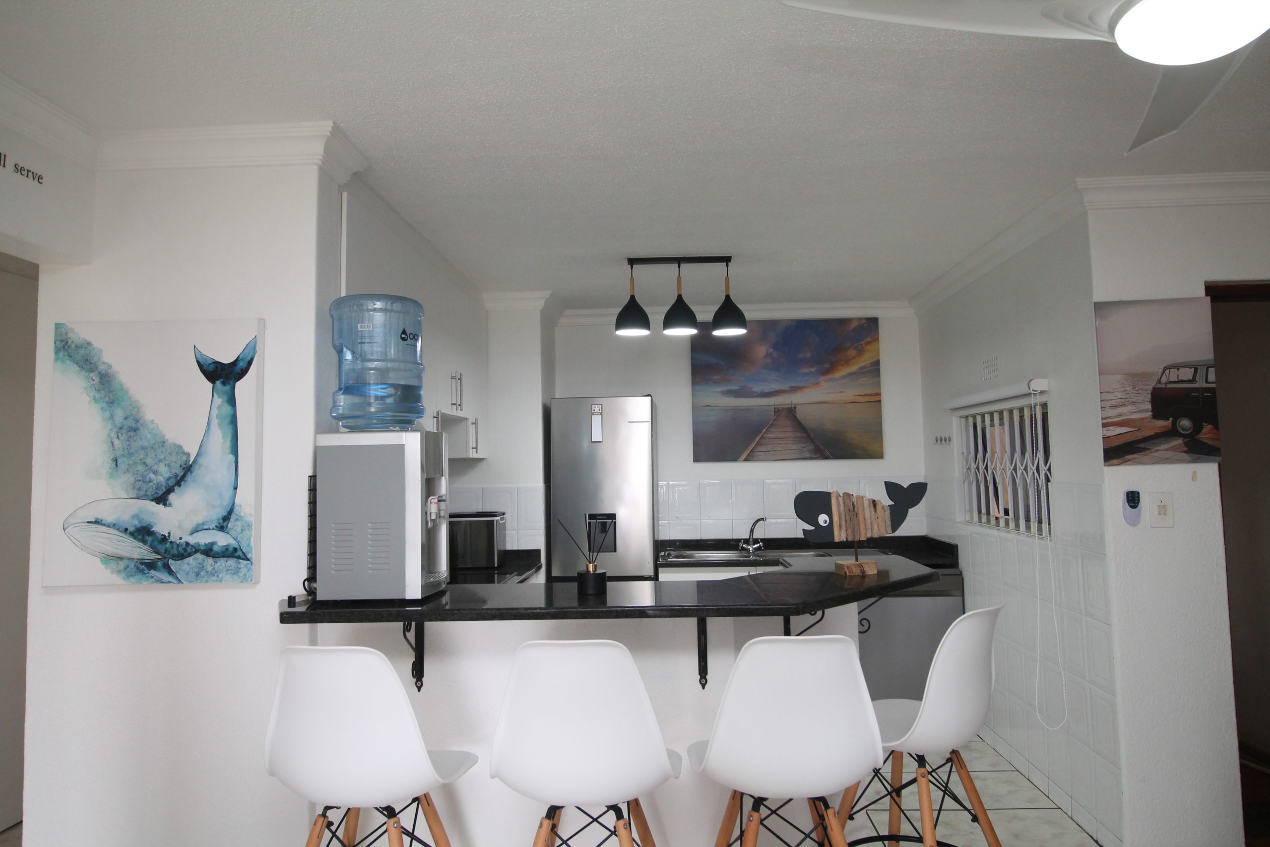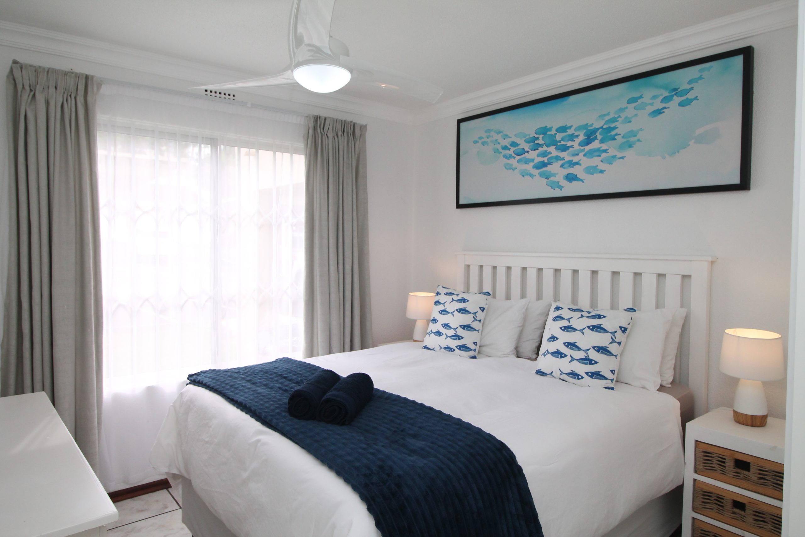 The main bedroom suite features ample natural light and direct access to the patio and offers great sea-views and overlooks the swimming pool. The entire space is designed for comfort. The en-suite bathroom has a shower. There is a double bed in the second bedroom and there are two bunk beds in the third bedroom. The guest bathroom features a shower. There is easy access to Uvongo Beach as well as the Uvongo Fishing Pier. Please note no parties allowed in Laguna La Crete.
