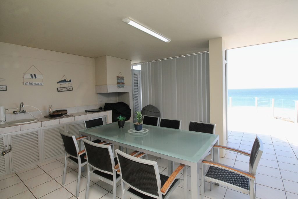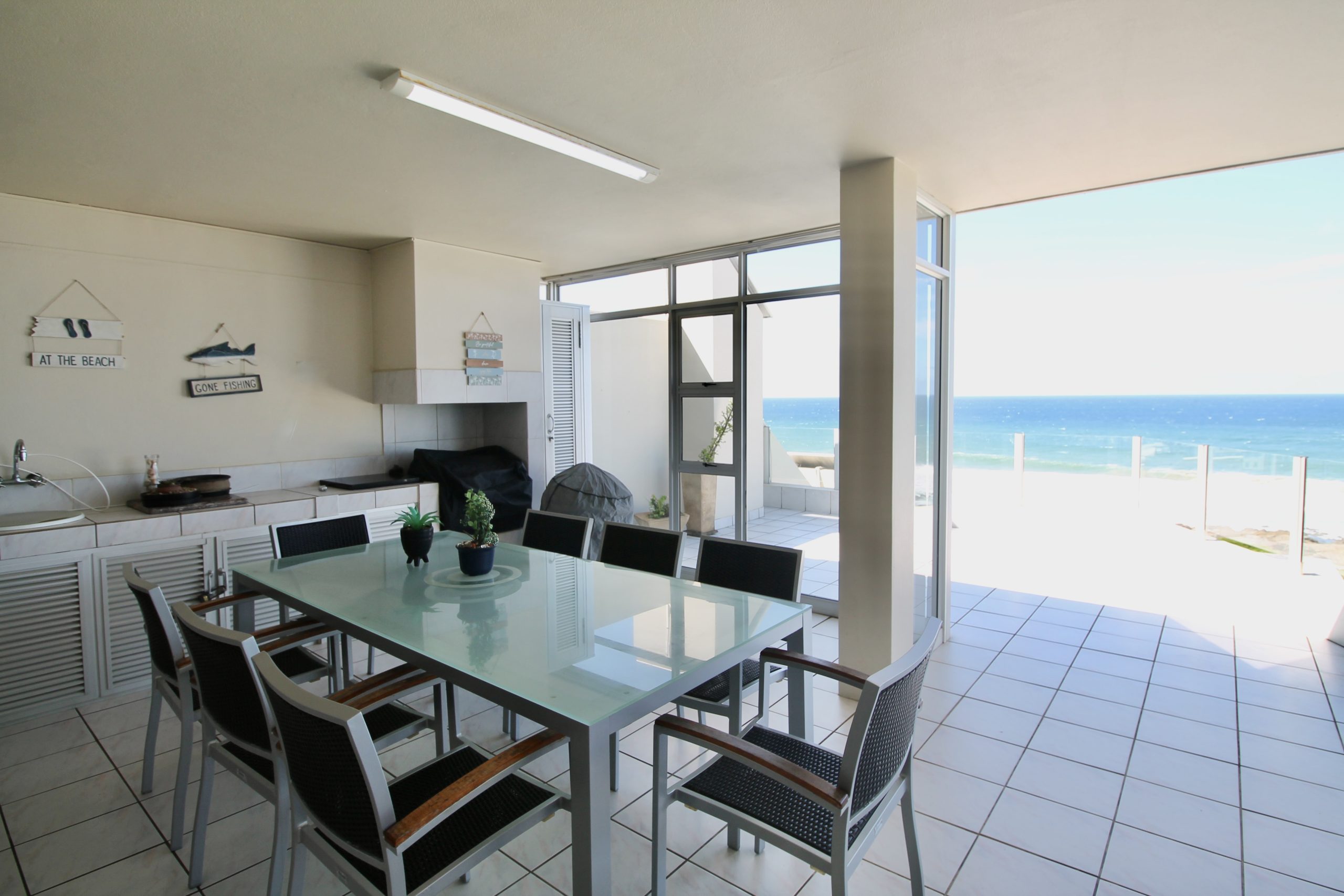 The large sliding doors blur the lines between indoor and outdoor living offering lovely ocean views. The spacious balcony is the ultimate entertaining spot, blending luxury with a relaxed coastal lifestyle. It features modern outdoor furniture and seamless indoor-outdoor flow. It's designed for hosting, offering a perfect, stylish backdrop while enjoying a meal with those you love. There is a gas braai and a water filter on the patio basin to provide drinking water.
