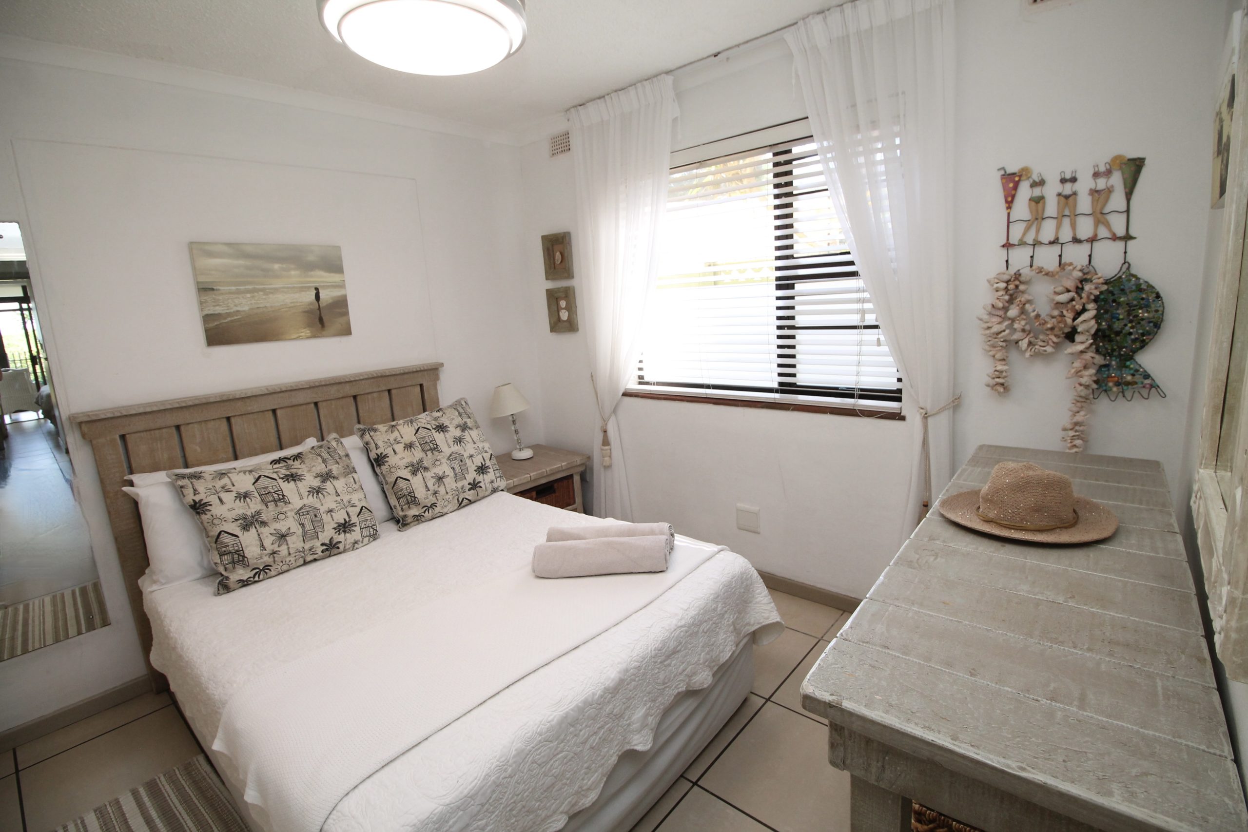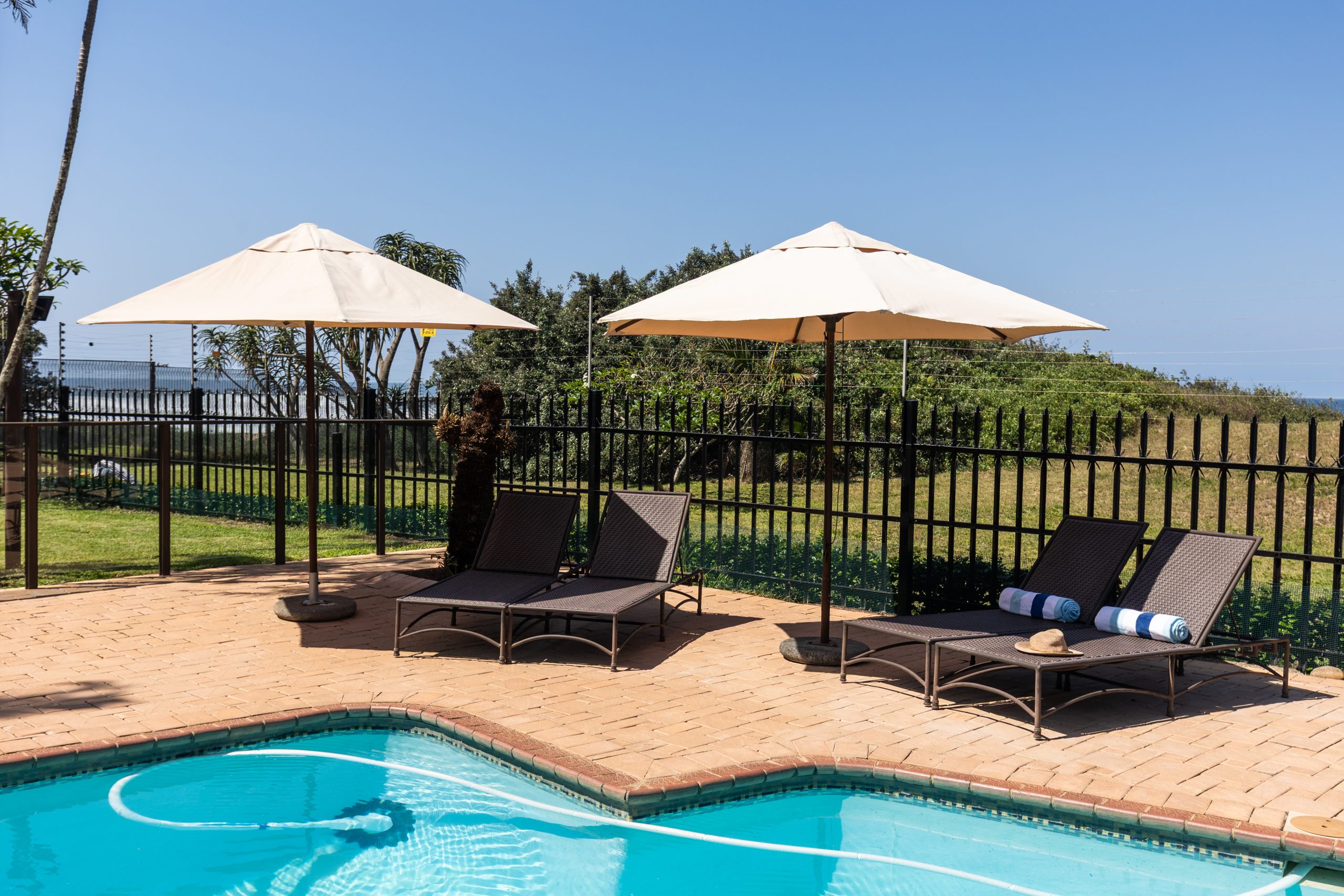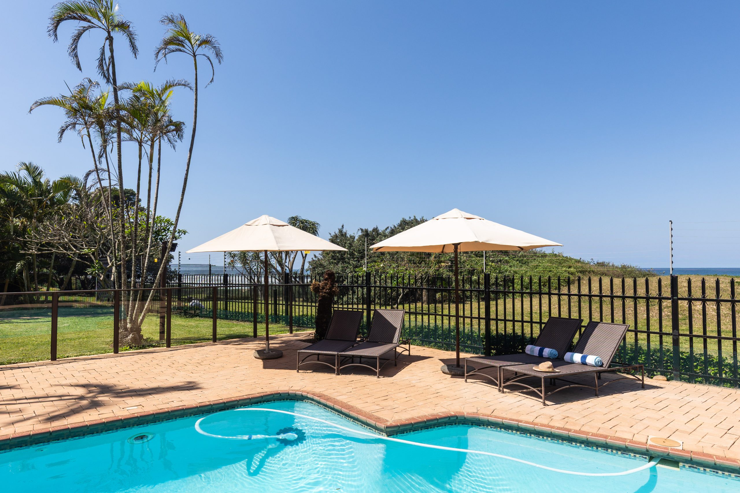 Sumelda 1 - Manaba Beach, South Coast, Self-Catering Accommodation. Immerse yourself in this stylishly decorated, three bedroom ground floor, beach front apartment. It offers a premium experience with the sound of waves and a beautiful pool, creating a tropical paradise for guests. Here one can enjoy the very best of both worlds, a dip in the fenced aquamarine pool, accessed easily from your patio, or still through a private access gate onto the pristine beach to frolic in the waves landing the seashore.