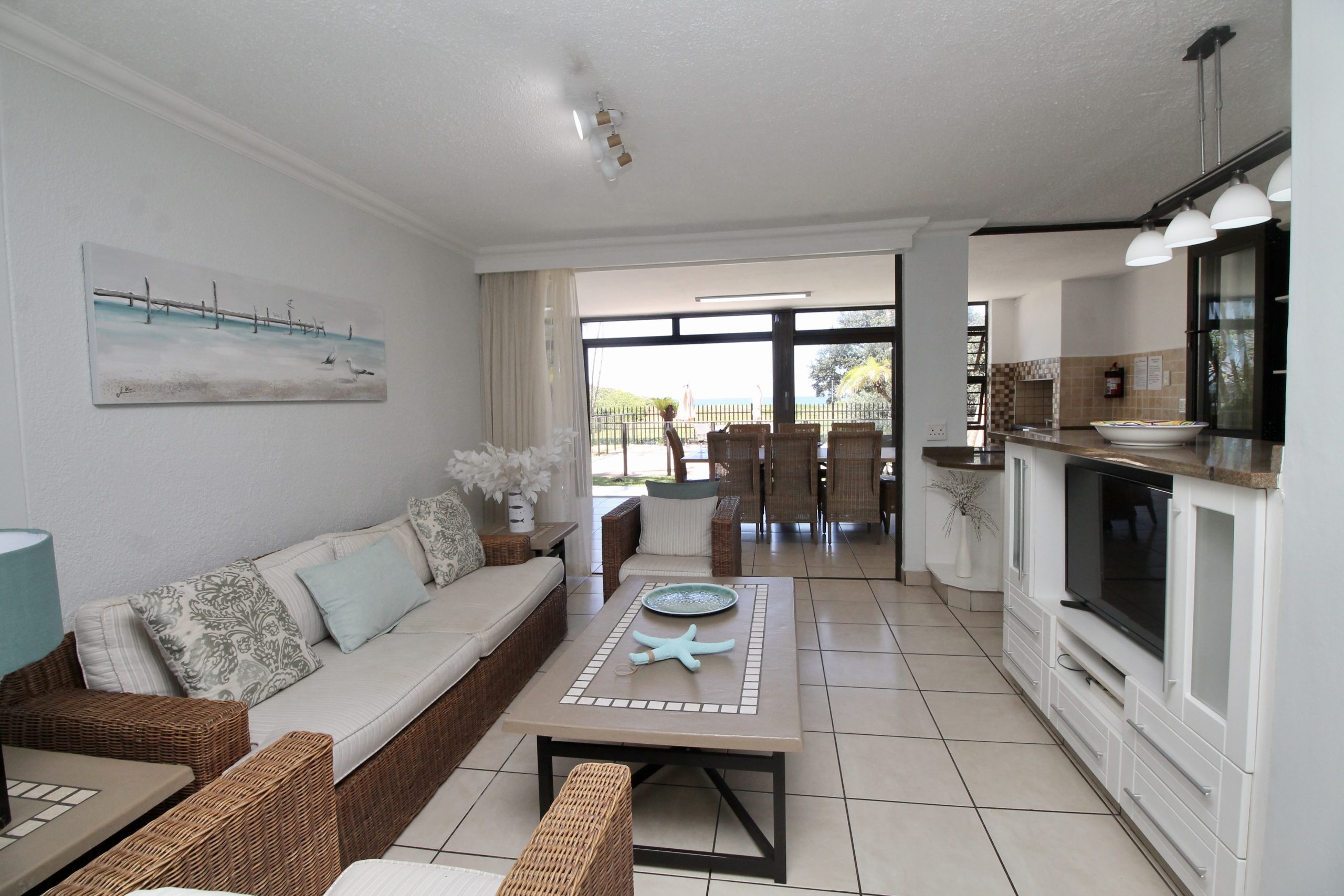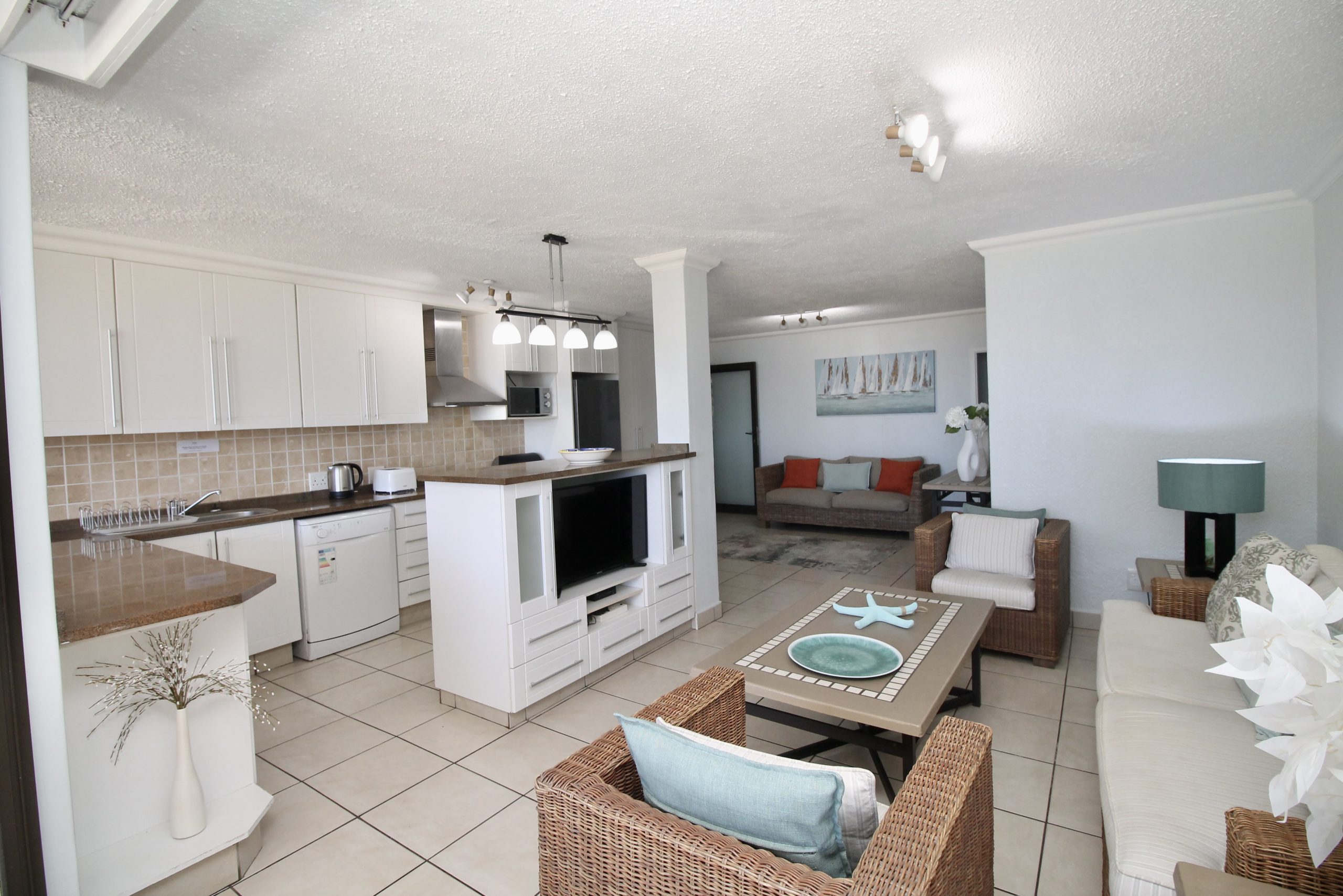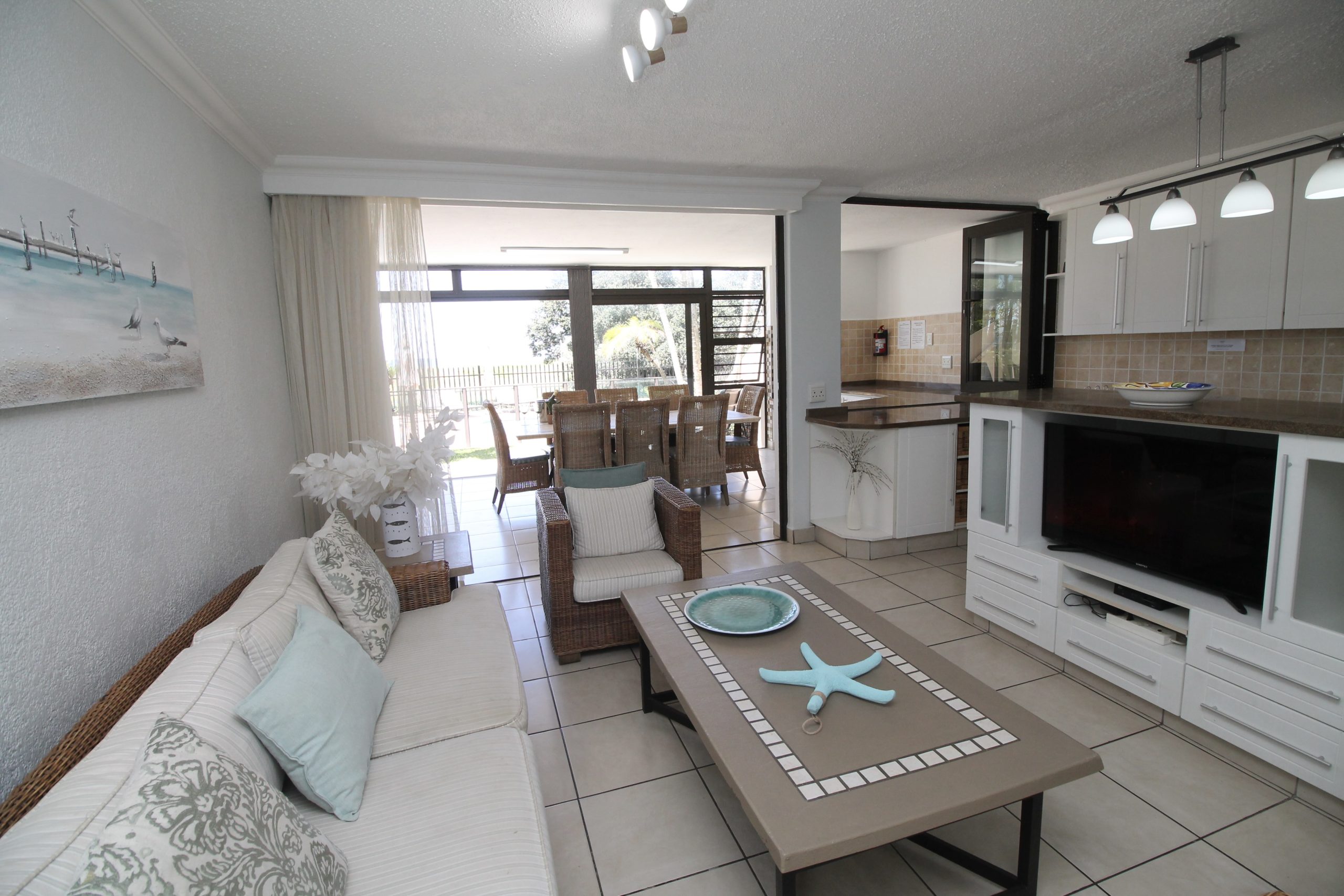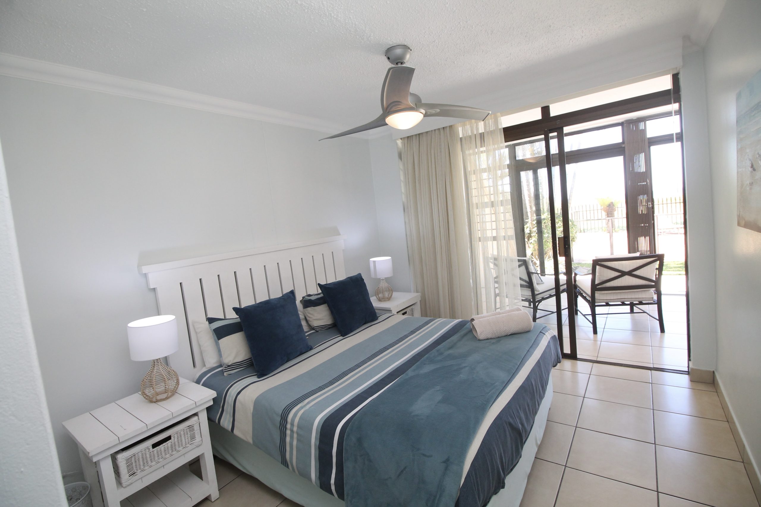 Sumelda 2, Immerse yourself in this stylish, three bedroom, ground floor self-catering holiday apartment in Manaba Beach. This upmarket beachfront property with a swimming pool offers modern amenities and direct beach access. It also offers a premium experience with the sound of waves and a beautiful pool, creating a tropical paradise for guests. Here one can enjoy the very best of both worlds, a dip in the fenced aquamarine pool, accessed directly from your patio, or stroll through your private access gate onto the pristine beach to frolic in the waves landing the seashore.