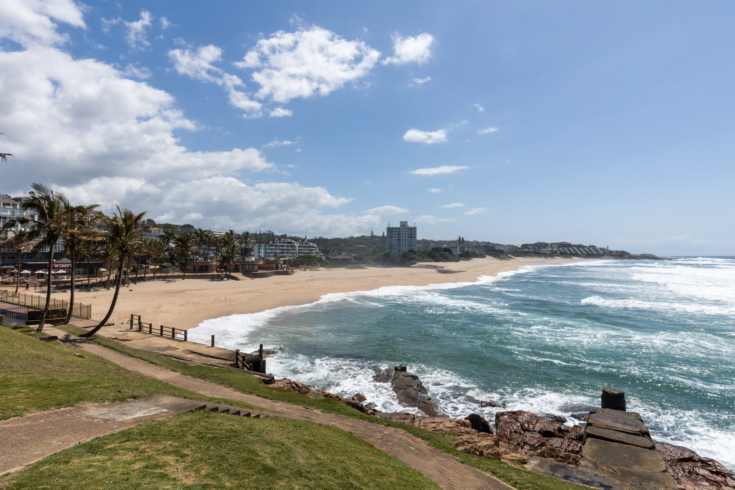 The weather on the South Coast is superb, even in winter. The sea temperature, which is influenced by the warm Mozambique current, seldom drops below 19 degrees. Nearby Shelly Beach has two shopping centres, many restaurants as well as movies. Shelly Beach also offers deep-sea fishing trips, dolphin and whale watching trips, scuba diving and also shark diving.